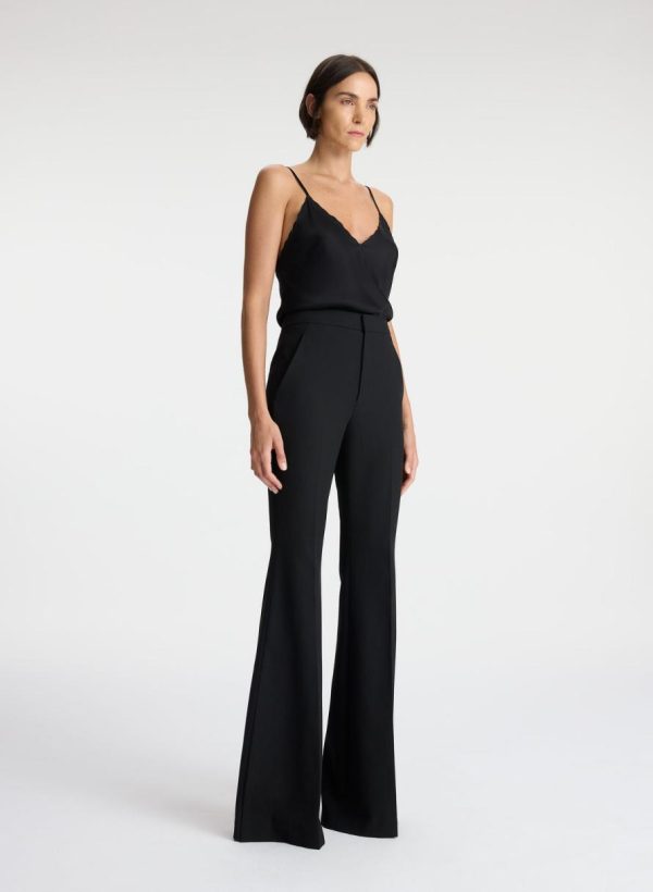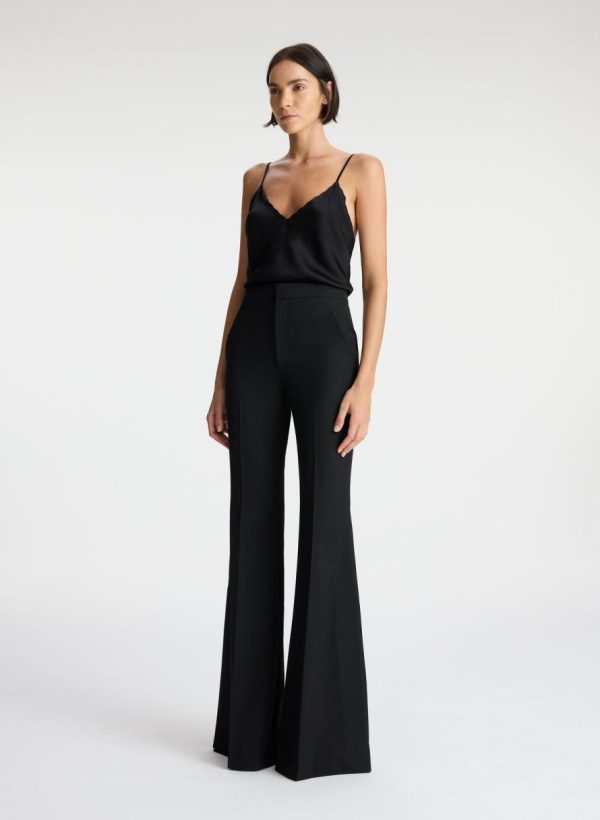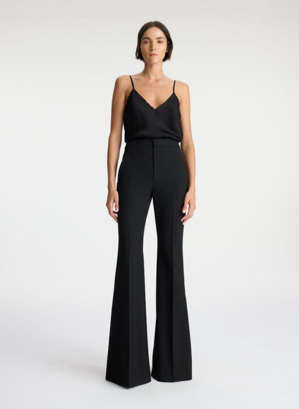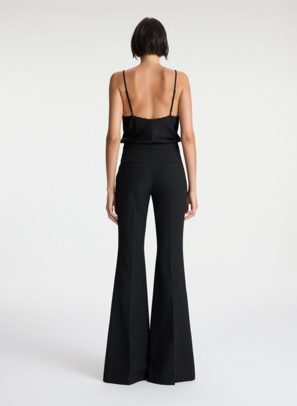 The Anders Pant is crafted of our signature suiting blend fabric in timeless black. This high-rise silhouette features flared legs with slits that extend from mid-calf to the ankles.