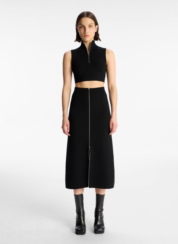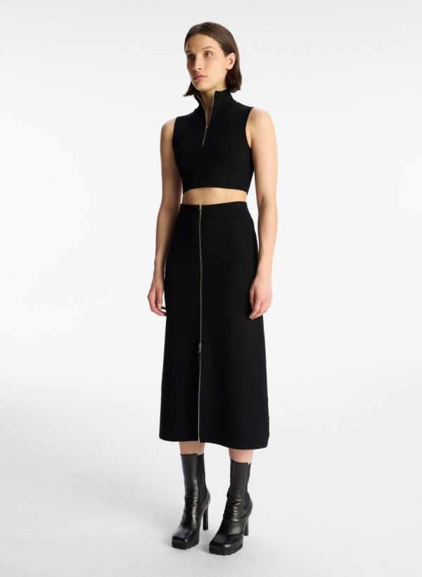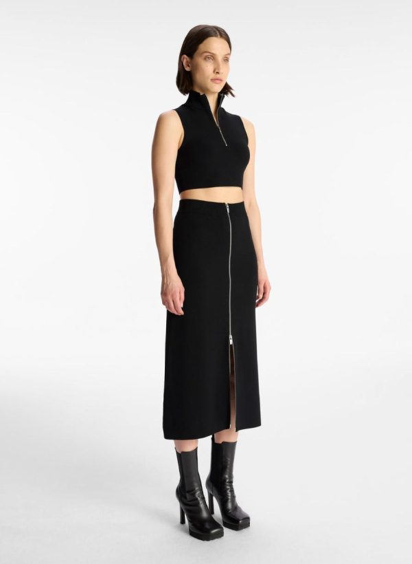 The Natalia Skirt is crafted from our signature compact knit fabric in wardrobe-essential black. This A-line midi silhouette features a high-rise waist and polished silver zipper.