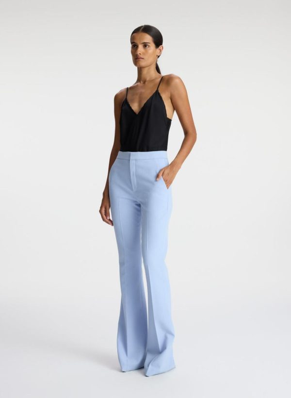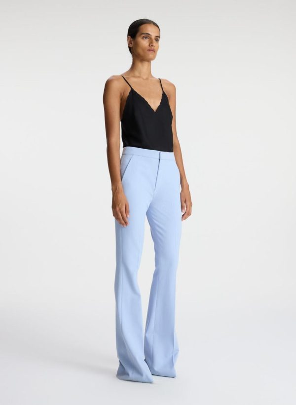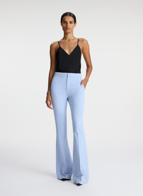 The Sophie II Pant is crafted of our signature suiting fabric in a light blue hue. This flared-leg silhouette features a mid-rise waist and slash pockets.