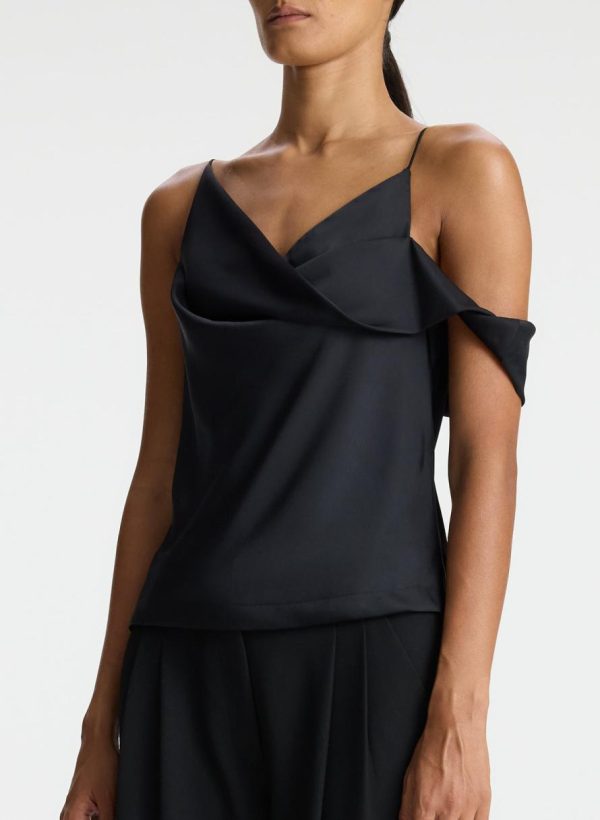 A.L.C. Tops | Ramona Satin Asymmetrical Top Black Women